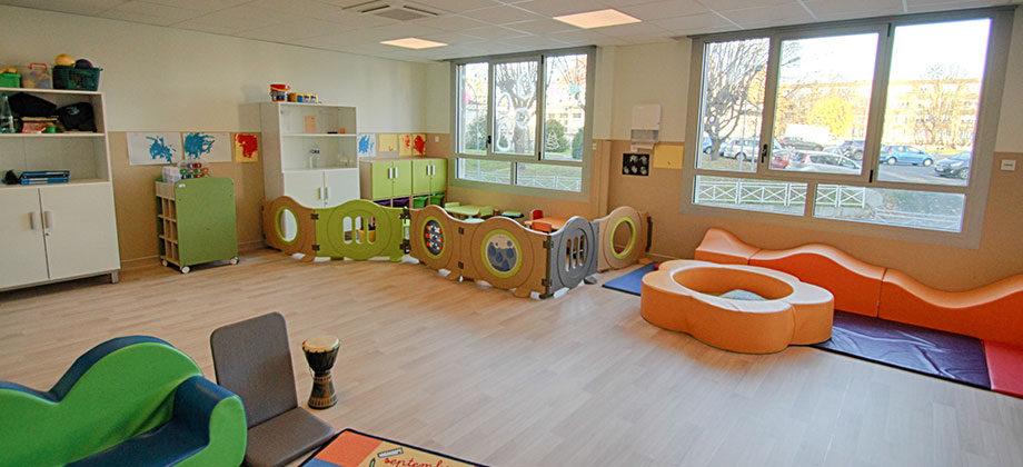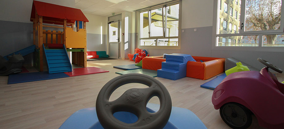 Les salles réservées aux jeux, aux activités ou au repos disposent d’un mobilier à la fois ergonomique et esthétique. Les nombreux équipements sont adaptés à l’univers de l’enfant en intégrant un confort de travail pour les professionnels de la crèche. Pour les beaux jours, un espace extérieur avec une aire de jeux et une piste cyclable a été aménagé. De nouvelles possibilités La localisation de la nouvelle crèche permet aux enfants de bénéficier des infrastructures du site. L’accès direct au parc élargit les possibilités d’activités extérieures de toutes sortes. Il facilite également la participation des petits aux évènements festifs comme par exemple la fête de l’hôpital. La proximité avec la salle de spectacle Blanche-Barjau favorise son utilisation aux fins de séances de cinéma, de spectacle.